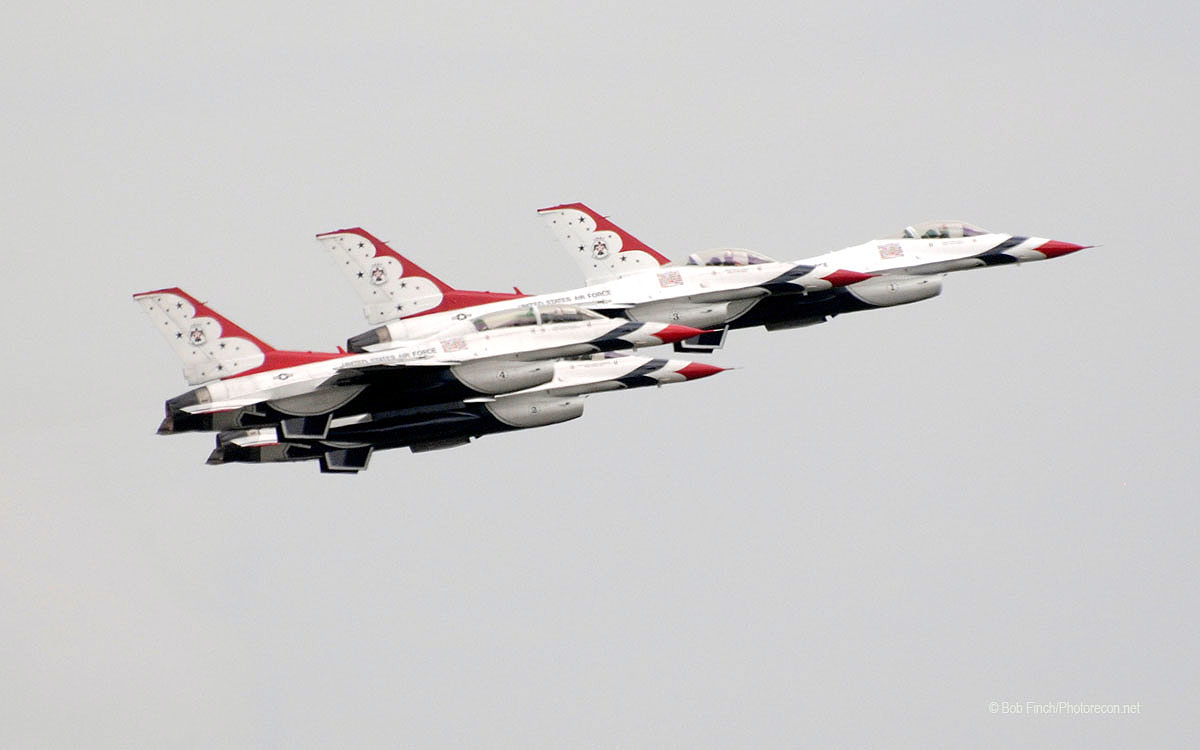 The Thunderbirds went up with a late start with wheels up at 3:35. They again did some of their classic moves: Arrowhead Loop; Calypso; Cross Over Break; Delta Burst; Diamond Cloverleaf Opener; Trail to Diamond; Diamond Roll; High Bomb Burst; Inverted Opposing Edge, the famous loud and 500 foot low Sneak Pass; a whole bunch more and concluding with the 6-ship Delta Pitch Out Break to Land. But you think you know all the moves but the Birds will put a new one in every once in a while!!!