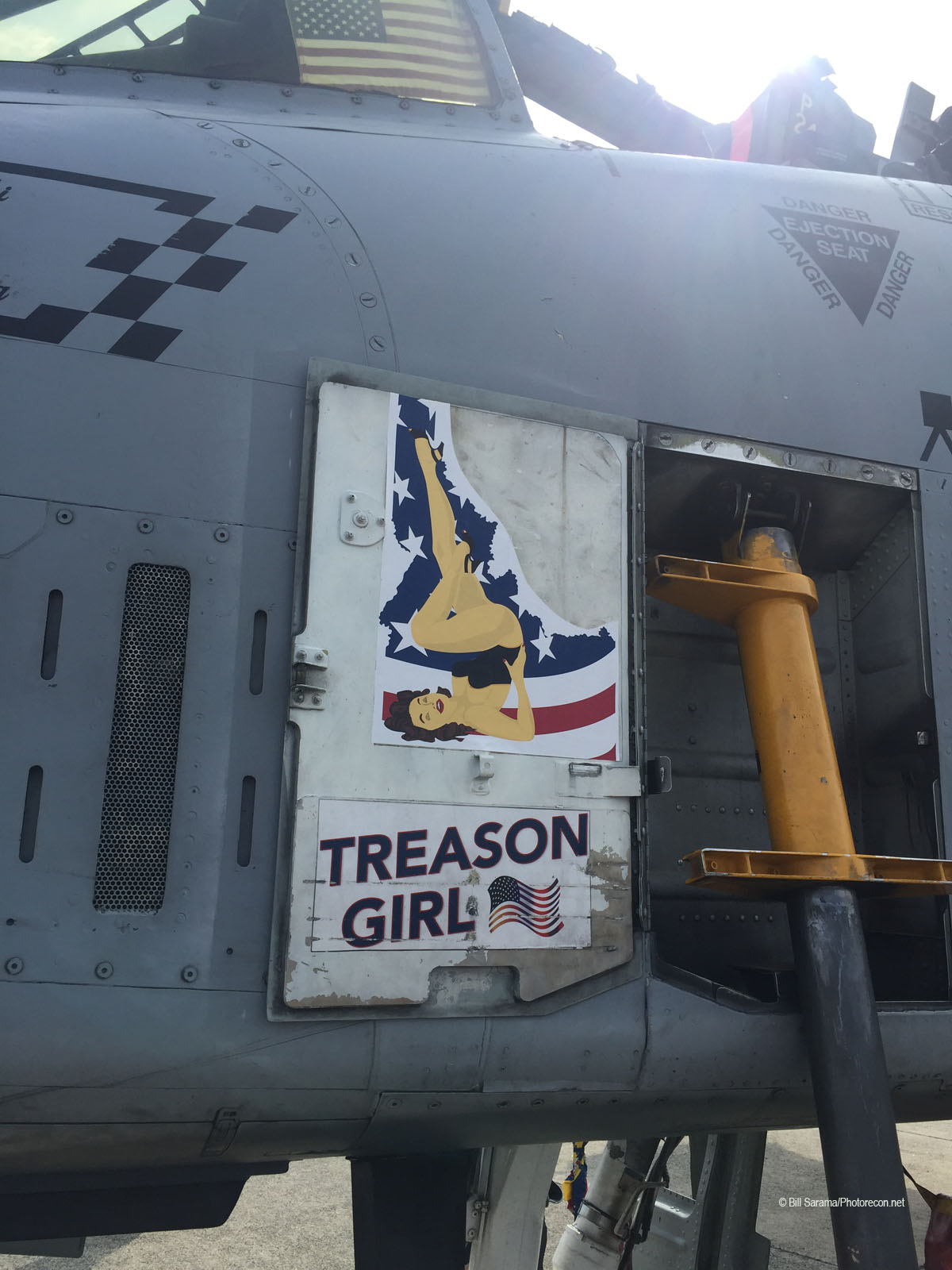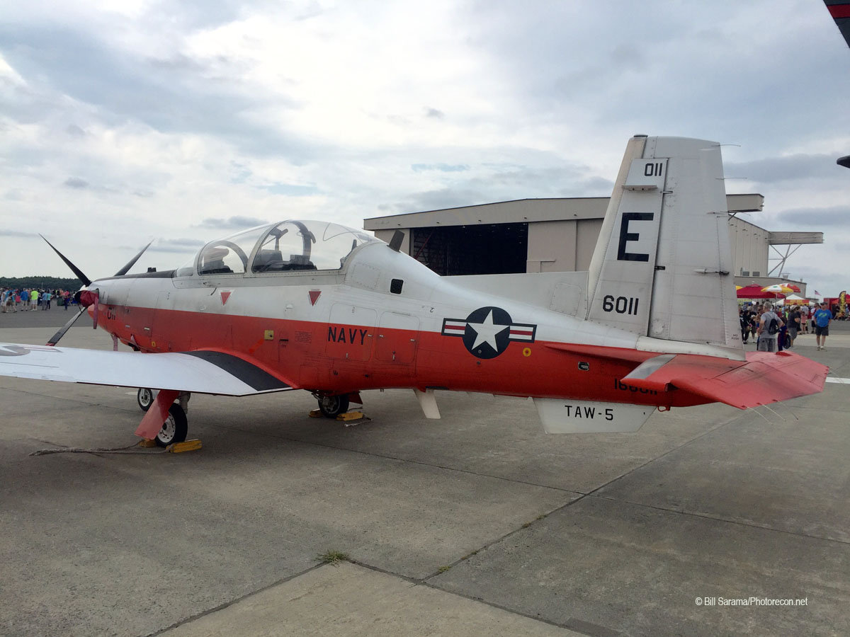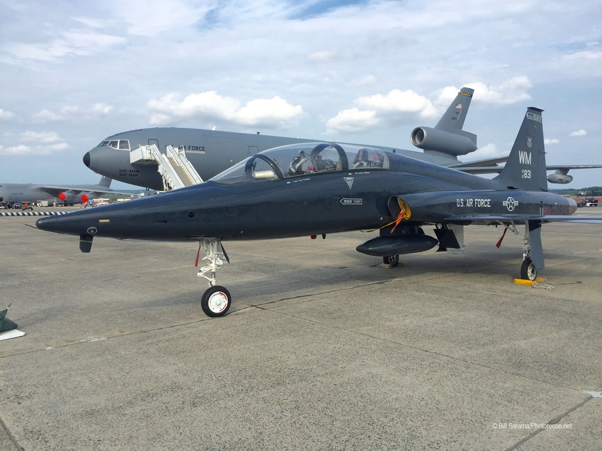 Walking further south on the static ramp we found another cluster of new and current Military birds: a black T-38C Talon from the 509th BW, Global Strike Command, ACC, from Whiteman AFB, (WM) MO, that assists in training B-2A bomber pilots; then another black T-38C Talon from the 71st Fighter Training Squadron “Ironmen” of the 1st FW out of Langley AFB; A CAP 8-passenger GippsAero GA8 AirVan 8; a KC-135R Stratotanker from the 157ARW / 133rd ARS NHANG out of Pease ANGB, NH; two Marine helos from HMLA-269 out of MCAS New River, NC – a UH-1Y “Yankee” Venom (Twin Huey) utility helo with rocket pods and a AH-1W “Whiskey” Super Cobra Attack Helo: a 300 year old B-52H heavy bomber from the 307th Bomb Wing, 93rd Bomb (Training) Squadron, FTU, AF Global Strike Command, Barksdale AFB, LA, “BD” tail, with “Hawgwild” nose art with a charging Wild Boar Pig (with an A-10 “Hog” in the dust); a T-6A Texan II from the 41st FTS, out of Columbus AFB (CB), OH; a white Raytheon Hawker Beechcraft T-1A “Jayhawk” (Beech T-400A) with Tuskegee Airmen nose art and a red tail band from the 99FTS /AETC out of Randolf AFB (RA), TX; a C-130 Hercules from the 910th AW, AFRC, Youngstown ARB, OH; a C-17A from the 445th AW, AFRC, Wright-Patterson AFB, OH; two Navy grey wings out of Chambers Field, NAS Norfolk, VA – an E-2C 8-blade Hawkeye from VAW-120 “Greyhawks” and a C-2A Greyhound also from VAW-120 (since they are a training squadron they use both the C-2A and the E-2C in VAW-120); the “Pie’ce de R’esistance” of the air show – two brand new Lockheed-Martin USAF F-35A Lightning II all-weather stealth multi-role conventional takeoff and landing (CTOL) fighters from the 58th FS / 33rd FW, out of Eglin, AFB, FL (non-flying) and roped off with heavy security all locked and loaded; even the Army was here – an AH-64 (no unit ID); a VIP gloss blue Bell UH-1N Twin Huey from the 11th Wing, out of JB Andrews, DC; a beautiful white with a red band USCG EDADS HC-144A “Ocean Sentry” twin-engined medium range SAR aircraft, based on the AIrbus (CASA/IPTN) CN-235 design, out of USCGAS Cape Cod;