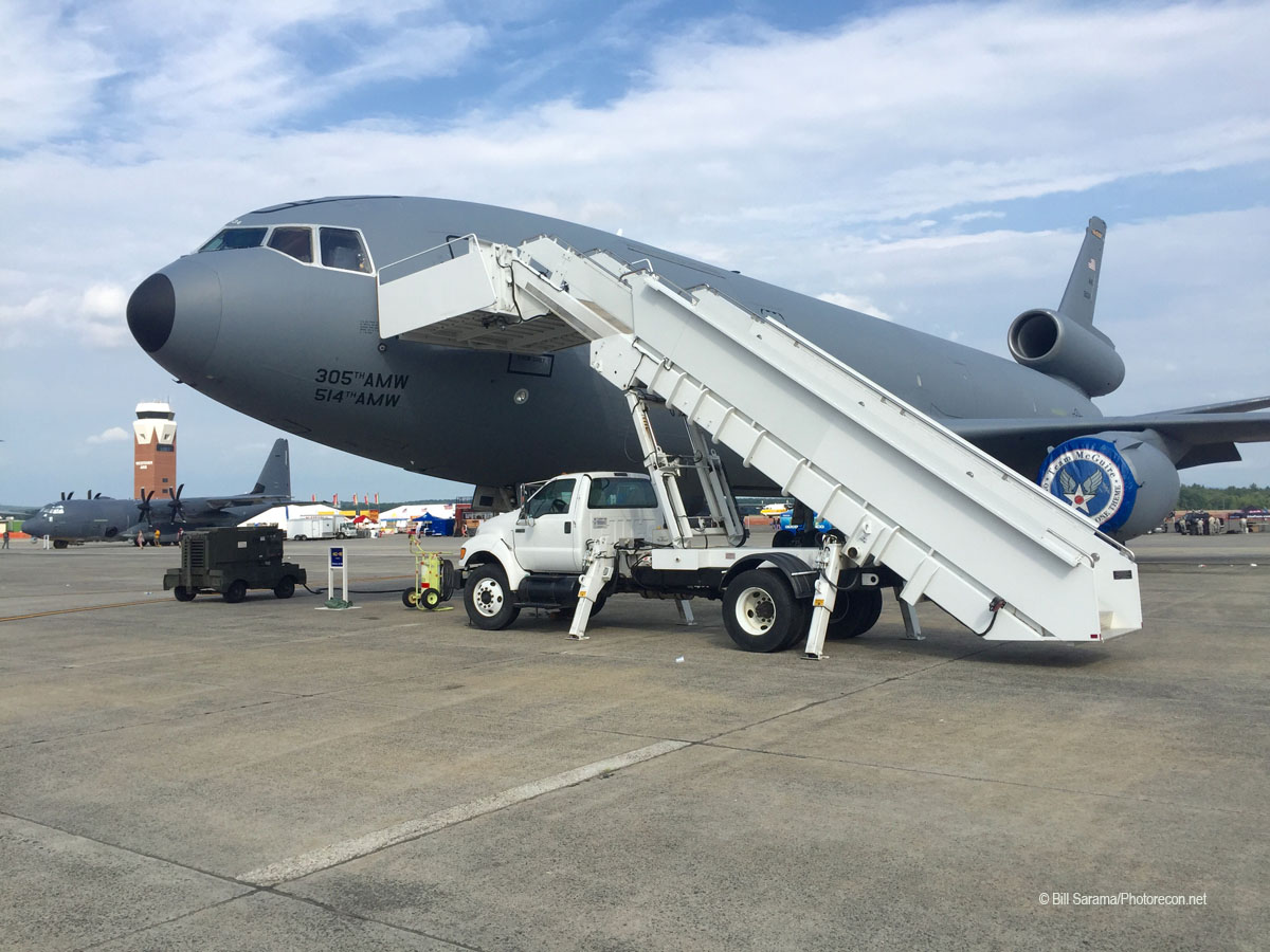 flat-bed scissor platform lift used for servicing and loading the C-5’s, to get some high shots of arriving static aircraft. Some, not wishing to go to such high altitudes, were allowed to view arriving aircraft right at the ramp access point off of the taxiway for planes turning into the static ramp. Thank you PAO and Sgt. Andrew Biscoe for the turn view.
