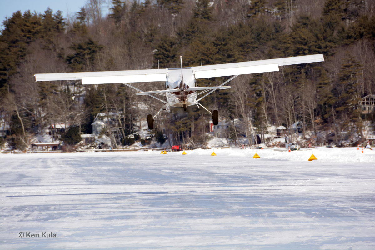 Alton Bay, New Hampshire is a finger of water off of the southeastern end of Lake Winnipesaukee, in the center of the state. It boasts of a summer seaplane base, which becomes the FAA’s only certified ice runway in the “Lower 48” during wintertime. The New Hampshire Department of Transportation carefully grooms and operates the airport, which becomes available to the public once a foot of ice forms in the bay. “Ice in” never occurred in 2020, but in 2021, the ice formed sufficiently for the runway to open for President’s Day weekend. I spent a few hours on the ice that sunny Saturday, watching an impromptu aviation festival proceed.