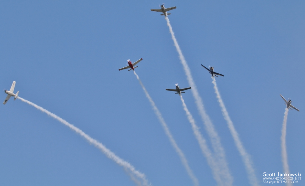 AirVenture celebrated the 70th birthday of the single engine Beechcraft T-34 Mentor this year. The T-34 was designed as a primary military trainer aircraft and is derived from the civilian Beechcraft Model 35 Bonanza. The T-34 first flew in 1948 and entered service in 1953 with the United States Air Force, and the United States Navy in 1955. The T-34 was originally powered by a single piston engine that being the A&B model, which was eventually succeeded by the turboprop powered C model or Turbo mentor. All branches of the United States military, including the United States Coast Guard, used the T-34 until it was replaced by the Raytheon T-6 Texan II. Today the T-34 is extremely popular with civilian owners and aerobatic performers alike such as Julie Clarke who just retired from the air show circuit this year.