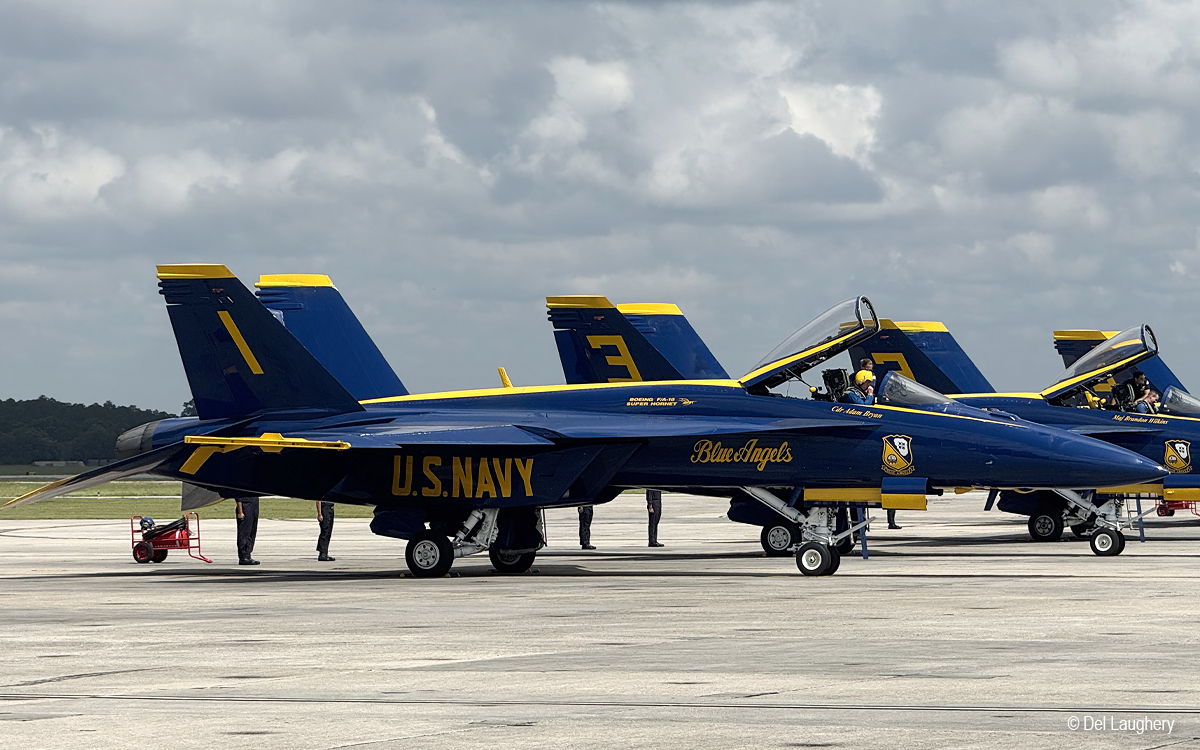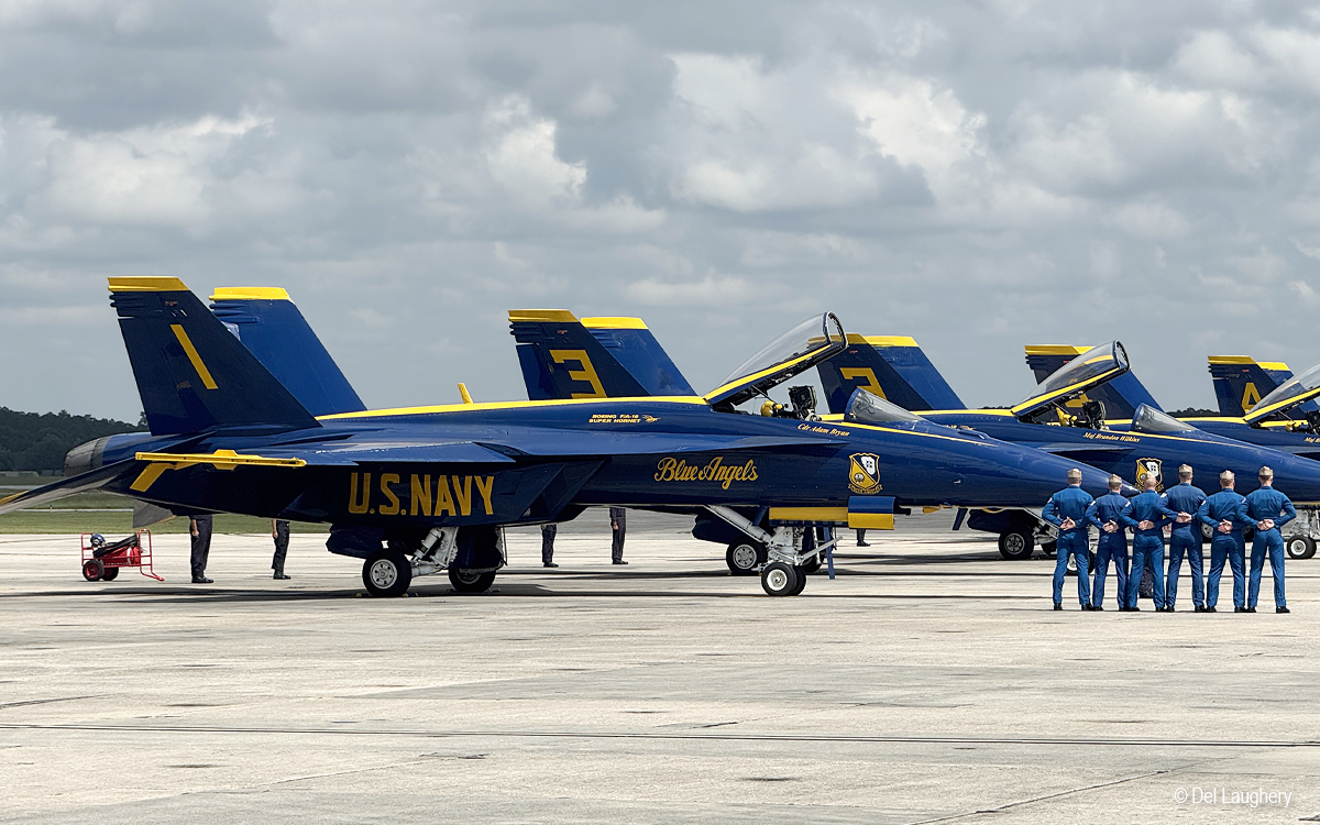 Each Tuesday and Wednesday prior to an air show, the Blue Angels conduct a practice session at Naval Air Station Pensacola, FL. Savvy locals head to the Naval Aviation Museum who opens the ramp behind the museum to allow the public to view this necessary preparatory step. A few lucky people, though, who have contacts within the team are offered the opportunity to view the practice from within the fence line at the Blue Angel facility. I was afforded this rare opportunity, recently, thanks to the Pratt & Whitney instructor staff at the F-35 Academic Training Center at Eglin AFB, FL, that I’ve led since 2011. This was part of their way to say “good bye” as I retired from Pratt & Whitney on June 30, 2025.