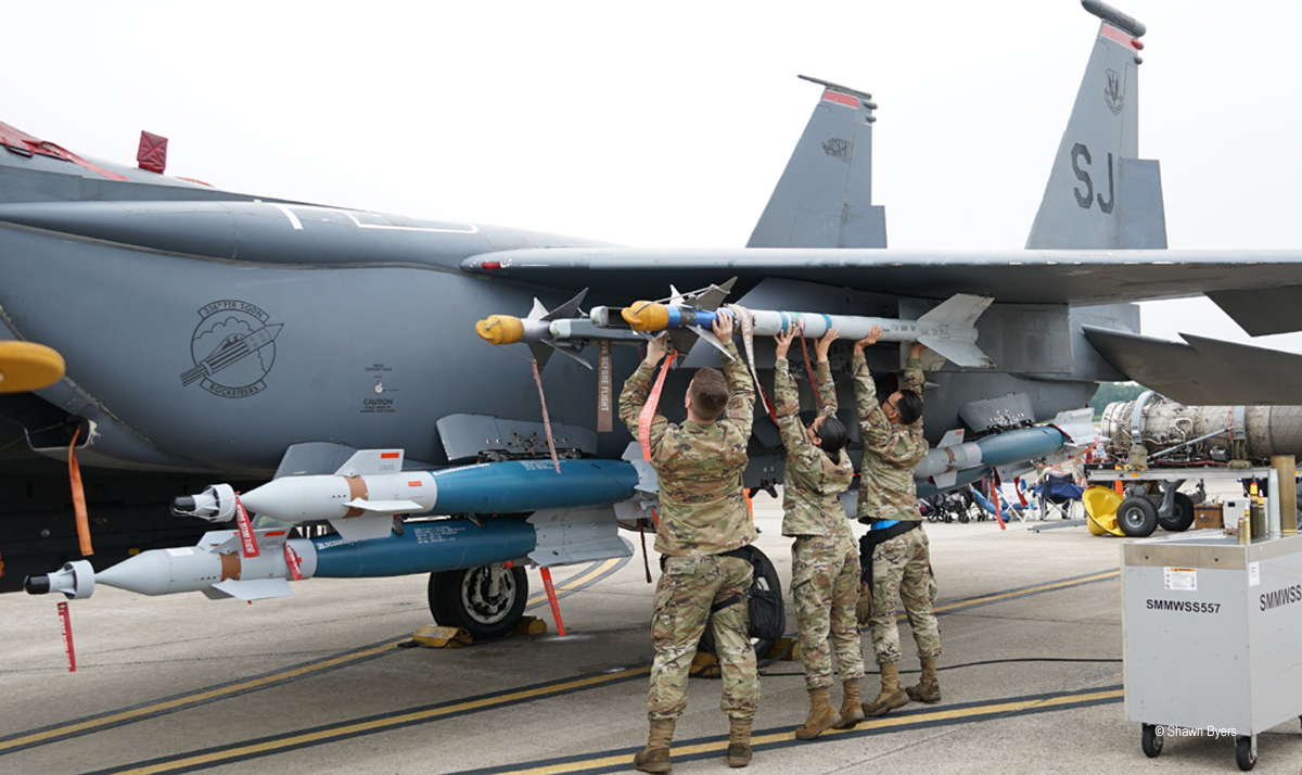 Who would have thought that static displays could win the day? On the west side of the ramp, Draken International had a Mirage F-1 and an A-4 Skyhawk in arctic camouflage and a T-38 from Randolph AFB in blue camouflage. At the east end, an F-16 from Shaw’s 79th FS with a yellow and white colored tail. In the middle, five F-15E Strike Eagles in squadron and wing celebratory colors were on display. Unfortunately, the squadrons set up their tables under the wings and stair units at the cockpit. Still, they are wonderful to see in person and I hope to catch them in-flight at another time.