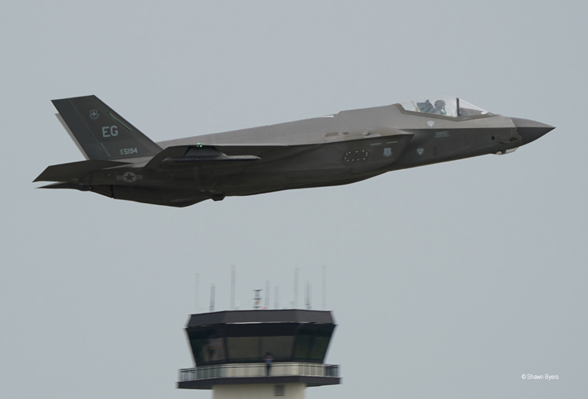 I always give a little extra time at this base in advance of the show. This is a very good spotters base, quite unique with a single runway and a centralized viewpoint. There was a large group of people at this location Thursday morning and we saw the Blue Angels arrive in the Delta Formation as well as the F-35s from Eglin AFB and the F-16s from Shaw. When the Blue Angels were ready for practice, the area was closed.
