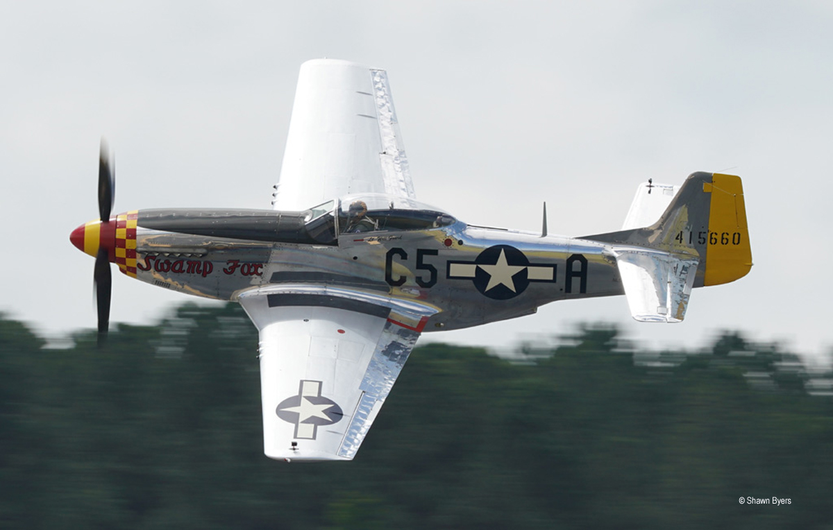 RT Dickson flew a solo routine in his P-51, “Swamp Fox”. Even under cloudy skies, the polished aluminum looked beautiful.