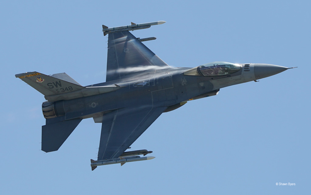 The F-22 Raptor Demo Team was positioned immediately in front of our media tent. On Saturday, the skies cleared in time for a high show. There was plenty of moisture in the air offering plenty of vapor shots. Quite unexpectedly, the Raptor approached for the power loop and discharged a large number of chaff flares. This is new this year at select airshows. I was hoping to see it again on Sunday but the ceilings were lower and the aircraft suffered a problem that terminated the routine early.