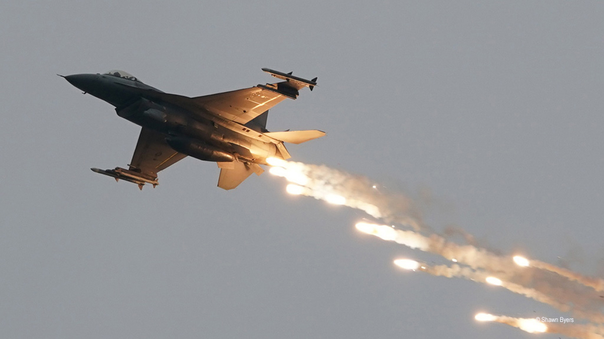 The U.S. Air Force Combined Arms demo was conducted by four F-15E’s and two F-16s. Working with a Joint Terminal Attack Controller on the ground, the Eagles and Vipers cleared the airspace before attacking the airfield. Aircraft approached from different positions and deployed ordnance while dispensing chaff to defeat any ground fired heat seeking artillery. There was definitely more chaff dispensed in the Sunday version of the show. Soon the enemy was eliminated and the airfield returned to friendly territory.